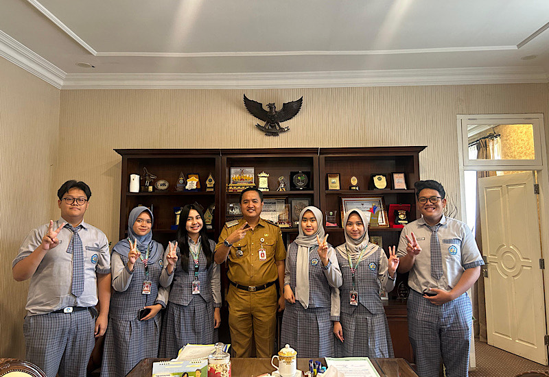 Kepala Disdikbud Lampung Thomas Amirico saat menerima kunjungan pengurus OSIS dan panitia Smanda Olympic dirumah kerjanya, belum lama ini. Foto: Istimewa