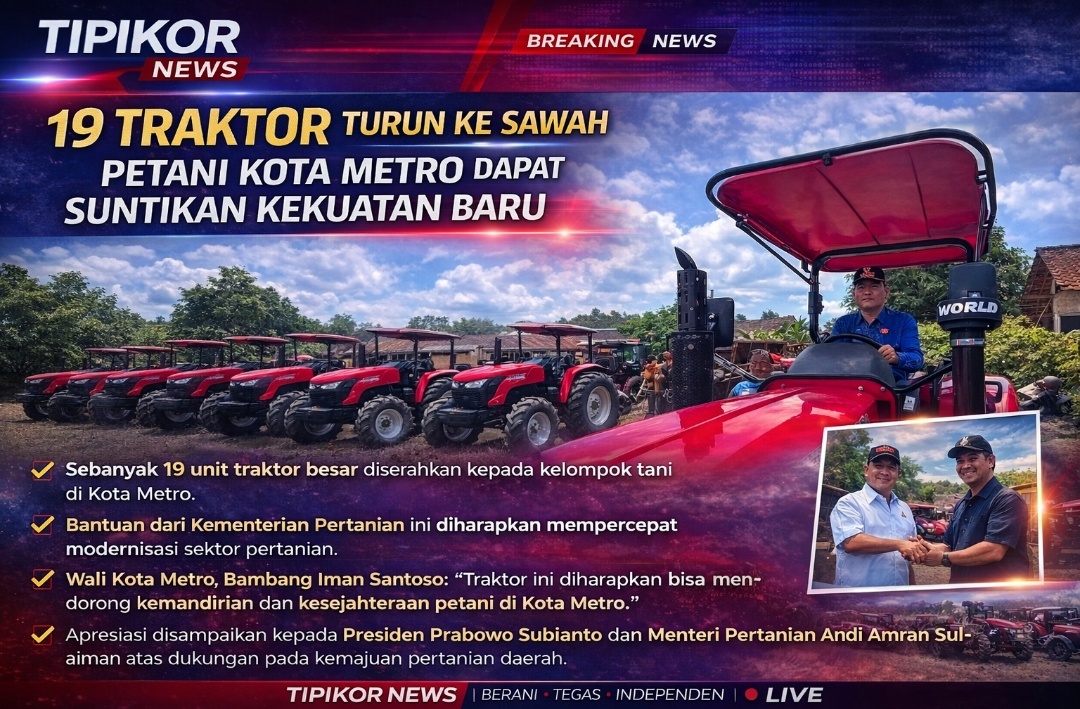 Kota Metro, Tipikor News β€” Sektor pertanian di Kota Metro mendapat dorongan signifikan setelah sebanyak 19 unit traktor besar diserahkan kepada kelompok tani.