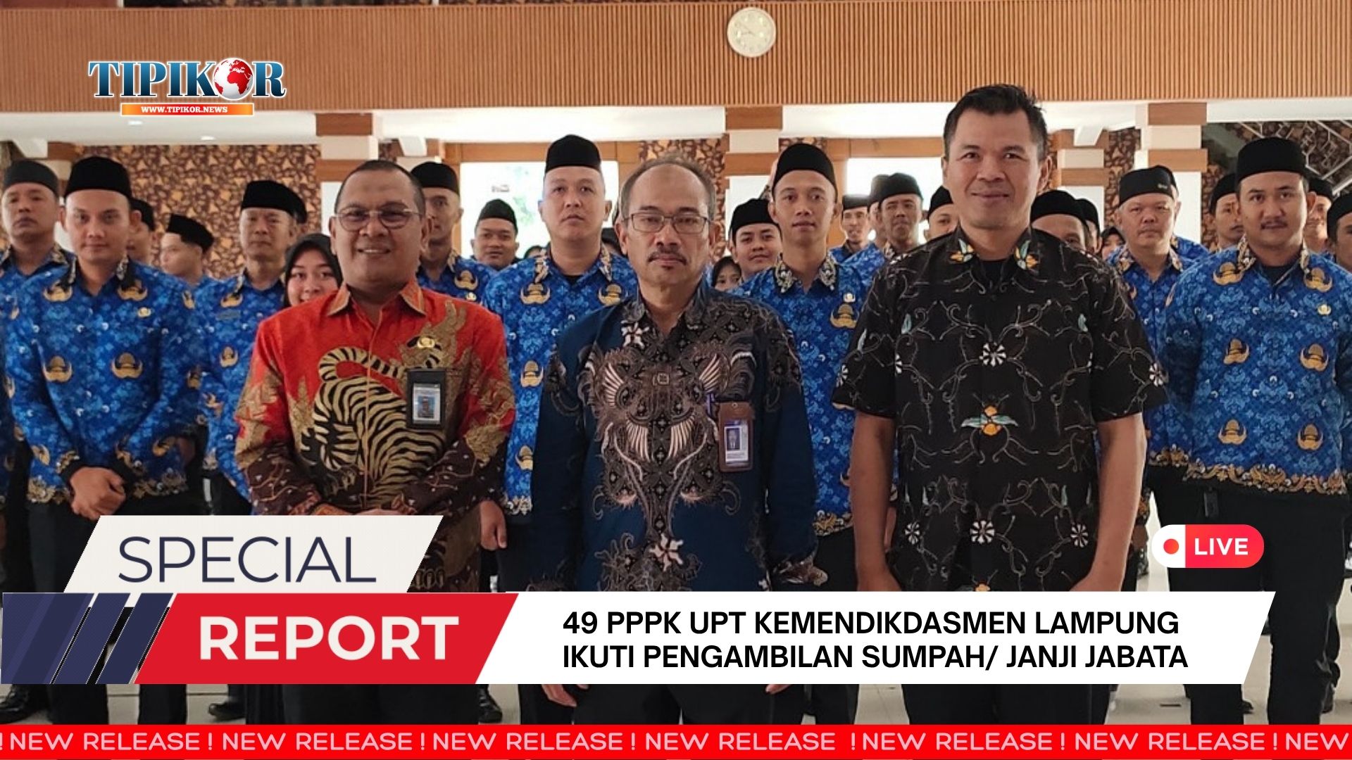 Bandar Lampung, Tipikor.news – Sebanyak 49 Pegawai Pemerintah dengan Perjanjian Kerja (PPPK) di lingkungan Unit Pelaksana Teknis (UPT) Kementerian Pendidikan Dasar dan Menengah (Kemendikdasmen) Provinsi Lampung mengikuti acara Pengambilan Sumpah/Janji Jabatan PPPK yang berlangsung di Aula BPMP Provinsi Lampung pada Rabu, 15 Oktober 2025.