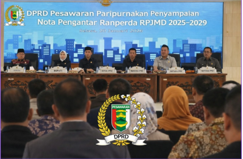 Gedongtataan, tipikor.news — DPRD Kabupaten Pesawaran menggelar Rapat Paripurna Penyampaian Nota Pengantar Rancangan Peraturan Daerah (Ranperda) tentang Rencana Pembangunan Jangka Menengah Daerah (RPJMD) Kabupaten Pesawaran Tahun 2025–2029. Rapat berlangsung di Gedung Serba Guna (GSG) Pemkab Pesawaran, Selasa (20/1/2026).