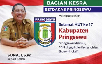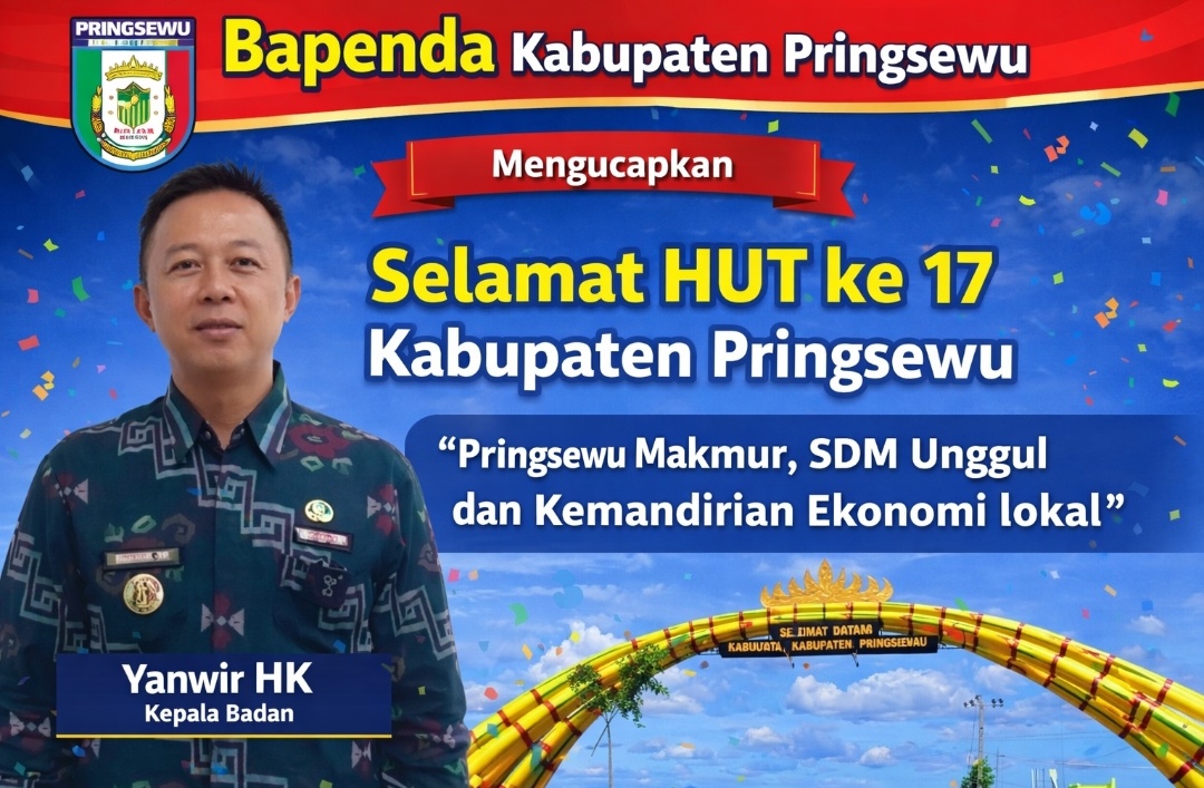 Pringsewu, Tipikor News β Badan Pendapatan Daerah (Bapenda) Kabupaten Pringsewu menyampaikan ucapan selamat atas Hari Ulang Tahun (HUT) ke-17 Kabupaten Pringsewu. Ucapan tersebut disampaikan sebagai bentuk dukungan dan apresiasi terhadap perjalanan pembangunan daerah yang terus menunjukkan kemajuan.