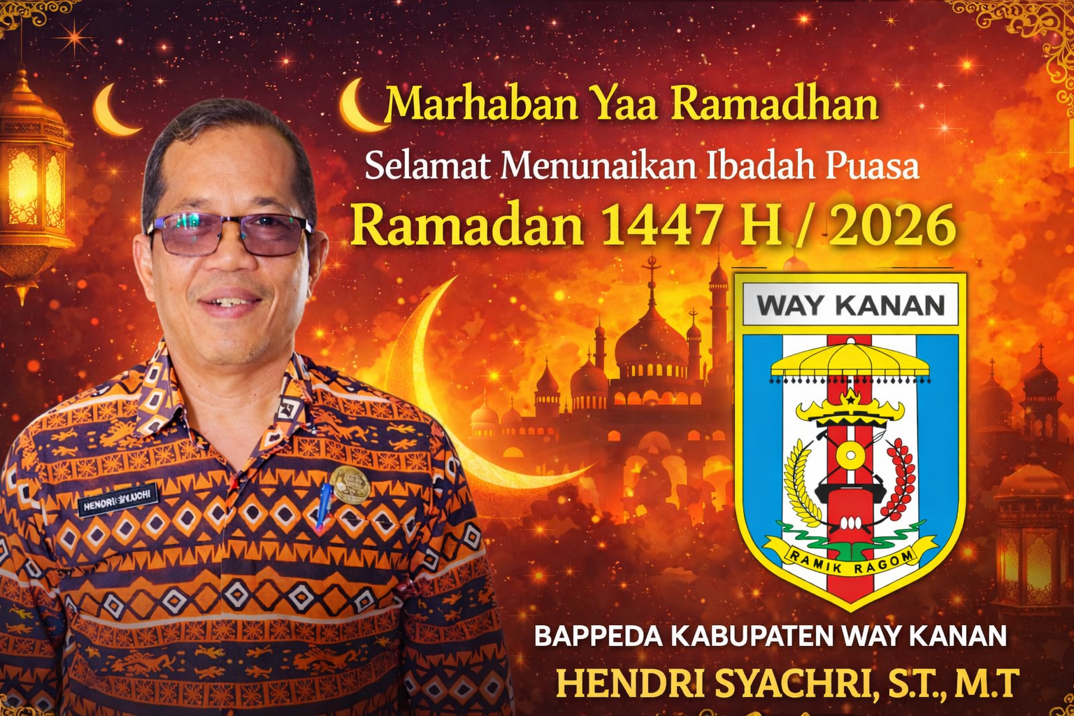 Way Kanan, Tipikor.news — Dalam menyambut datangnya bulan suci Ramadan 1447 Hijriah / 2026 Masehi, Badan Perencanaan Pembangunan Daerah (BAPPEDA) Kabupaten Way Kanan menyampaikan ucapan selamat menunaikan ibadah puasa kepada seluruh masyarakat.