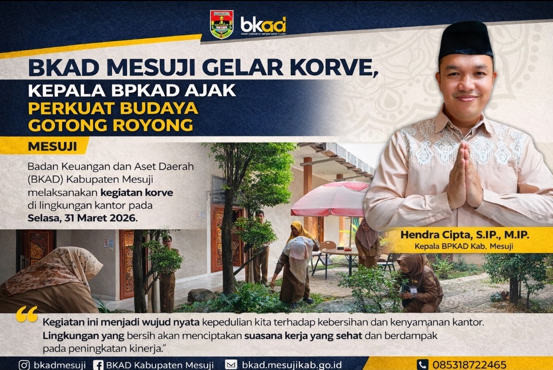 Mesuji, Tipikor News – Badan Keuangan dan Aset Daerah (BKAD) Kabupaten Mesuji kembali melaksanakan kegiatan korve di lingkungan kantor pada Selasa, 31 Maret 2026.