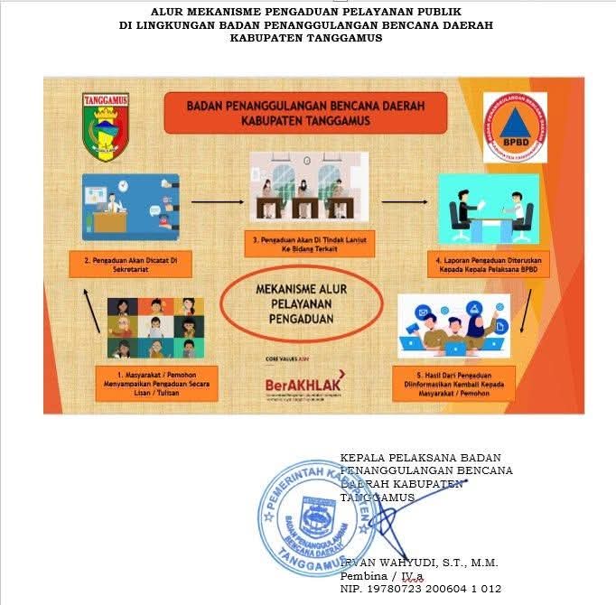 Dalam mekanisme tersebut, masyarakat dapat menyampaikan pengaduan baik secara lisan maupun tertulis, melalui kunjungan langsung ke kantor BPBD Kabupaten Tanggamus atau melalui saluran resmi yang telah disediakan.