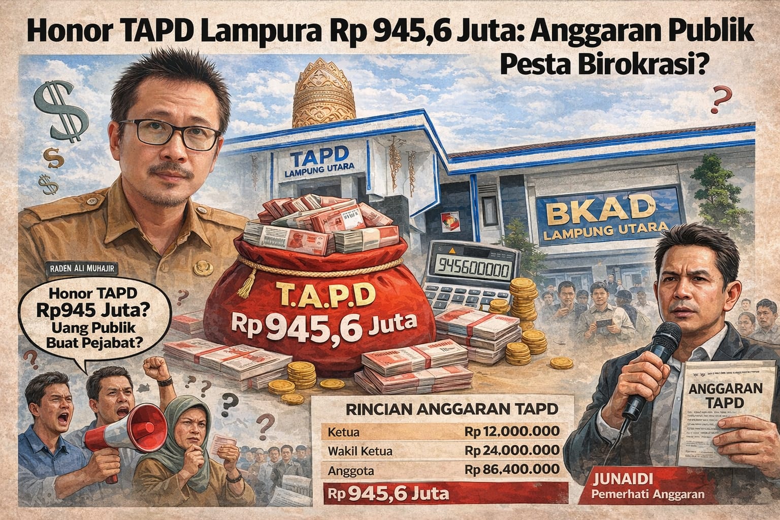 Lampung Utara, Tipikor News — Pemerintah Kabupaten Lampung Utara melalui Badan Pengelolaan Keuangan dan Aset Daerah (BPKAD) memberikan klarifikasi terkait pemberitaan mengenai anggaran honorarium Tim Anggaran Pemerintah Daerah (TAPD) tahun anggaran 2026 yang disebut mencapai sekitar Rp945,6 juta.