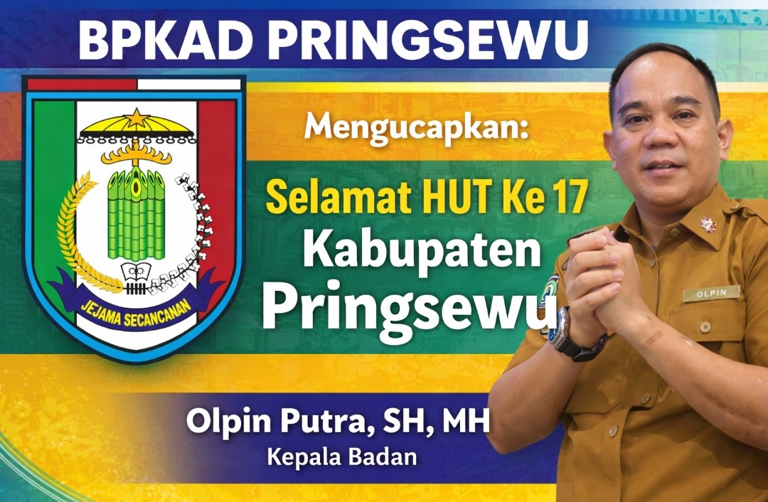 Ucapan tersebut disampaikan oleh Kepala BPKAD Kabupaten Pringsewu, Olpin Putra, SH, MH, sebagai bentuk dukungan terhadap kemajuan dan pembangunan daerah yang terus berkelanjutan.