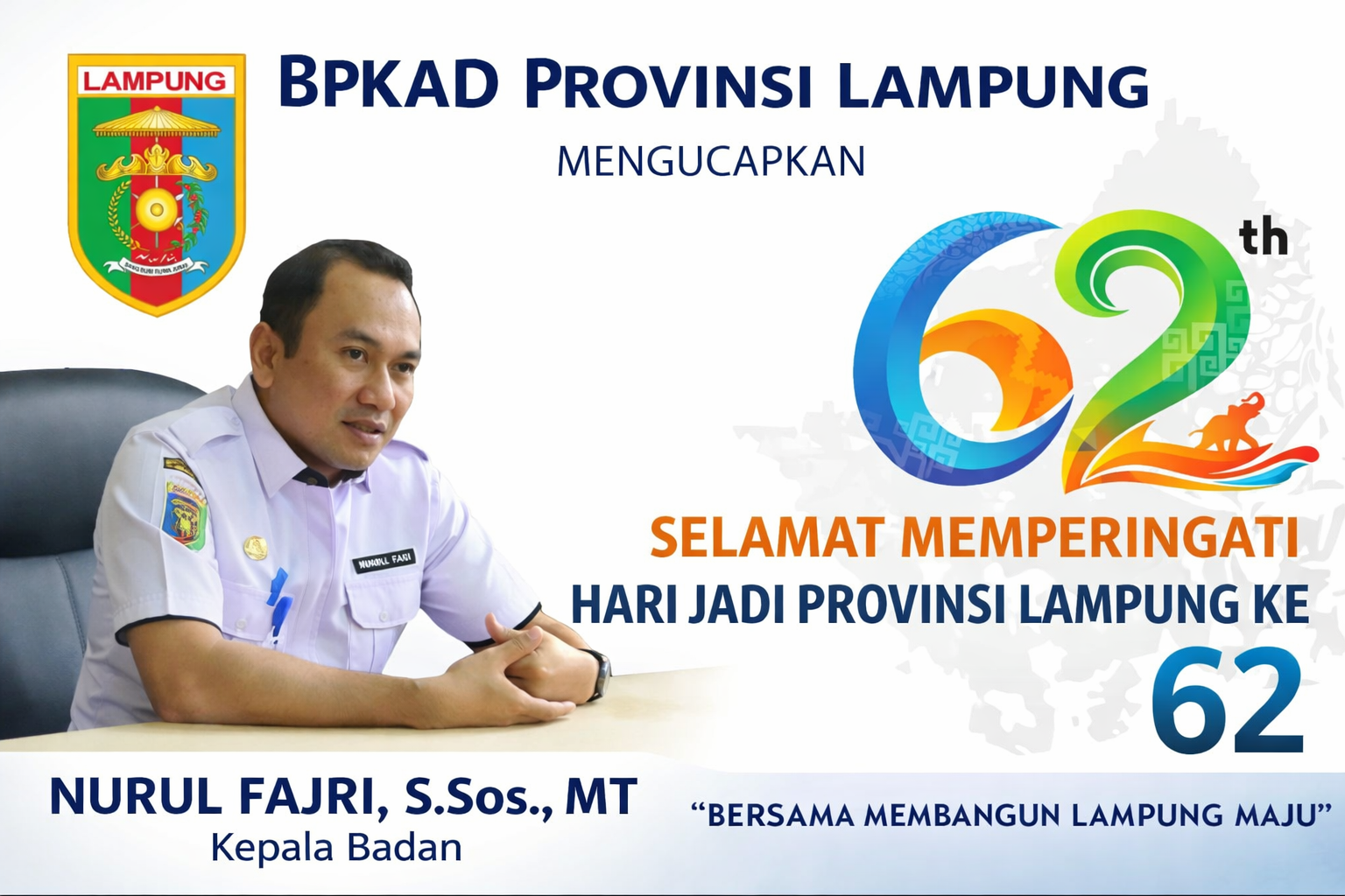 Bandar Lampung, Tipikor News — Badan Pengelola Keuangan dan Aset Daerah (BPKAD) Provinsi Lampung menyampaikan ucapan selamat dalam rangka memperingati Hari Ulang Tahun (HUT) ke-62 Provinsi Lampung.