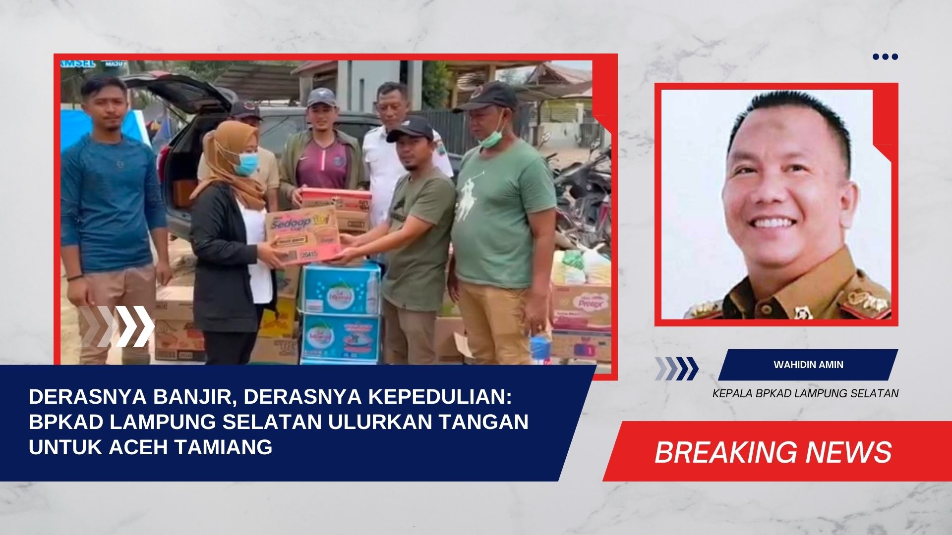 Pada Rabu (17/12/2025), Badan Pengelola Keuangan dan Aset Daerah (BPKAD) Kabupaten Lampung Selatan mengirimkan bantuan kemanusiaan bagi masyarakat Aceh Tamiang yang terdampak banjir. Bantuan ini bukan sekadar paket logistik, melainkan simbol kasih dan solidaritas dari hati yang peduli