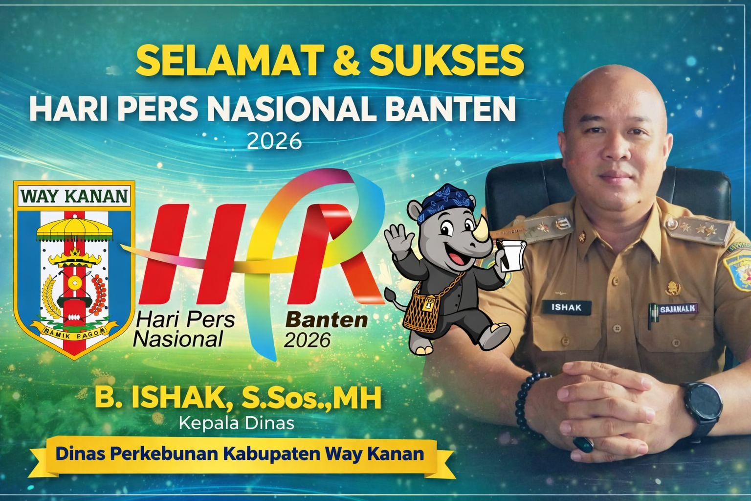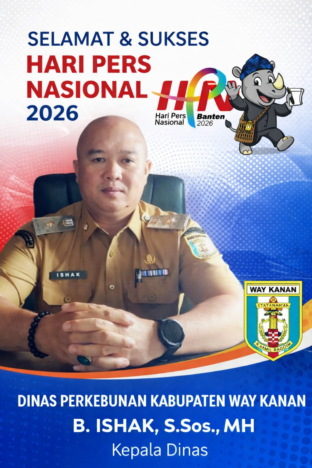 Melalui ucapan resmi, Dinas Perkebunan Kabupaten Way Kanan menyampaikan apresiasi dan penghormatan setinggi-tingginya kepada seluruh insan pers di Indonesia. Kepala Dinas Perkebunan Kabupaten Way Kanan, B. Ishak, S.Sos., MH, menegaskan bahwa pers memiliki posisi strategis dalam menyampaikan informasi yang akurat, berimbang, dan edukatif, khususnya terkait sektor perkebunan dan pertanian daerah.