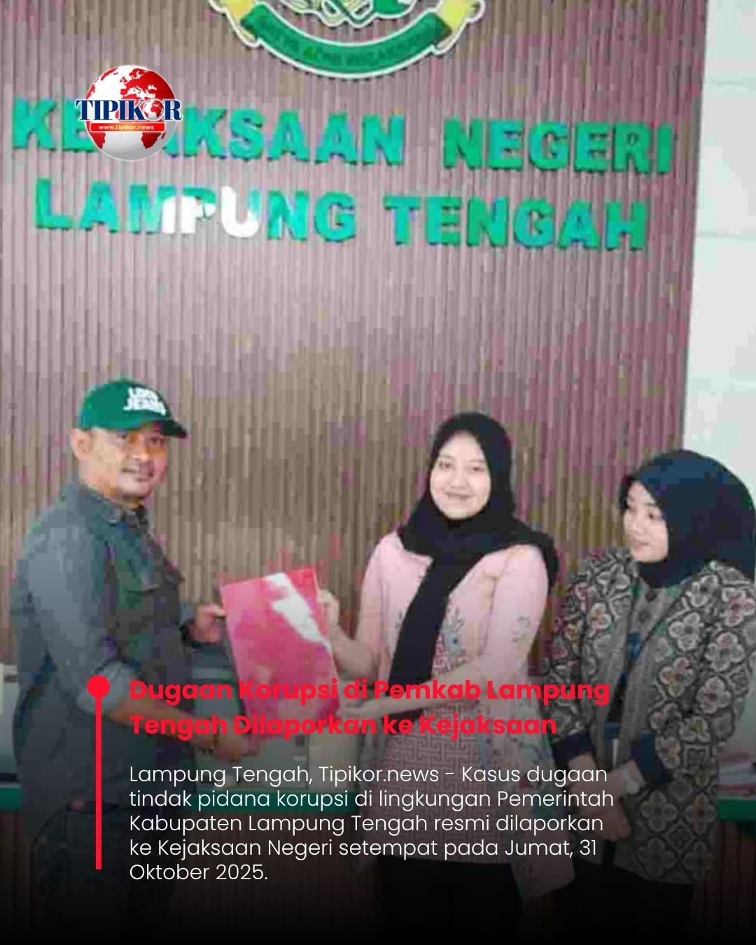 Lampung Tengah, Tipikor.news – Kasus dugaan tindak pidana korupsi di lingkungan Pemerintah Kabupaten Lampung Tengah resmi dilaporkan ke Kejaksaan Negeri setempat pada Jumat, 31 Oktober 2025.