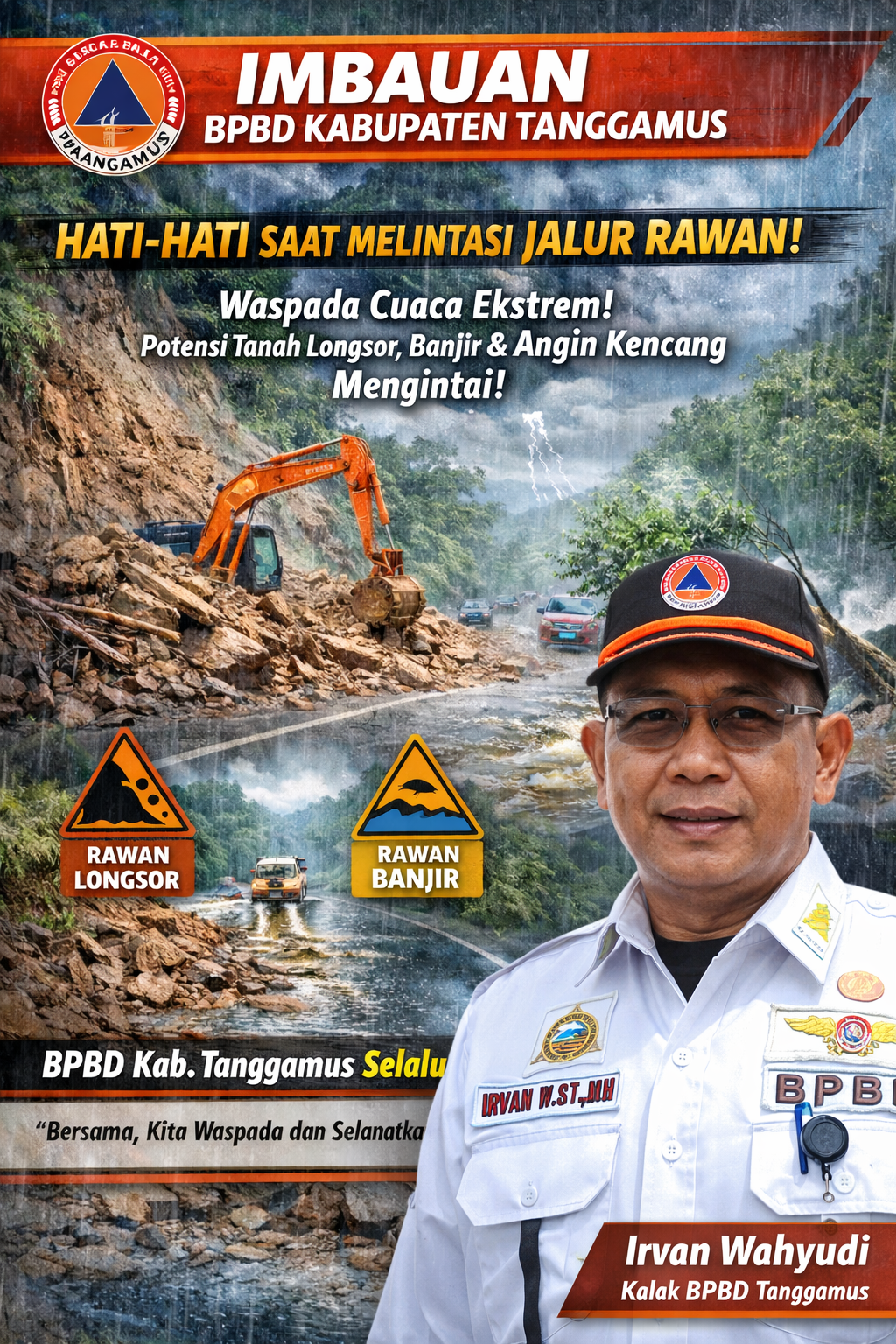 Kepala Pelaksana BPBD Kabupaten Tanggamus, Irvan Wahyudi, langsung mengeluarkan imbauan tegas kepada masyarakat agar meningkatkan kewaspadaan, terutama saat melintasi jalur rawan bencana.