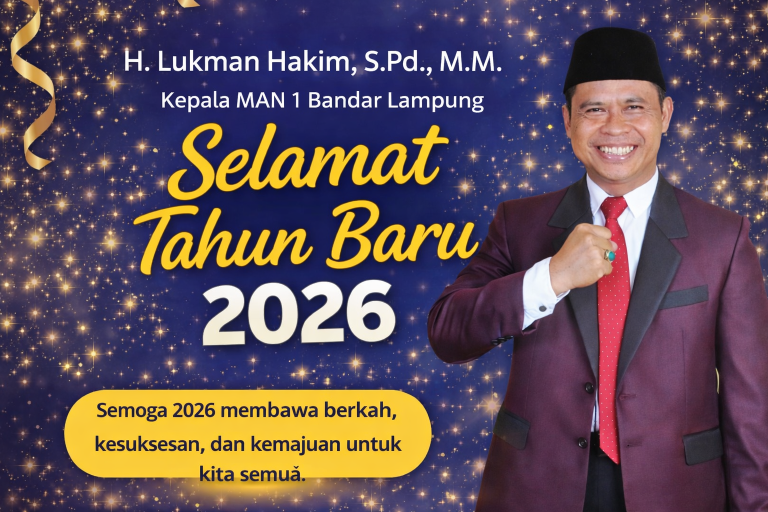Bandar Lampung, Tipikor.news – Mengawali tahun 2026, Kepala MAN 1 Bandar Lampung, H. Lukman Hakim, S.Pd., M.M, menyampaikan ucapan selamat tahun baru kepada seluruh warga madrasah, guru, tenaga kependidikan, peserta didik, serta alumni.
