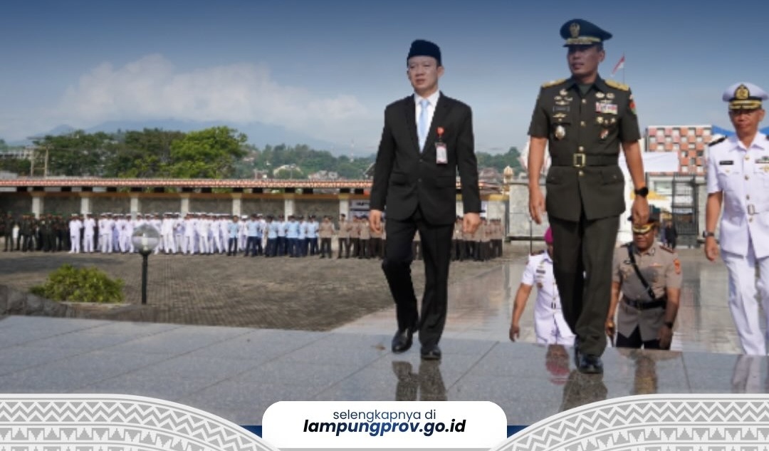 Kegiatan berlangsung khidmat dan sarat makna, dengan Sekretaris Daerah Provinsi Lampung Marindo Kurniawan bertindak sebagai inspektur upacara.