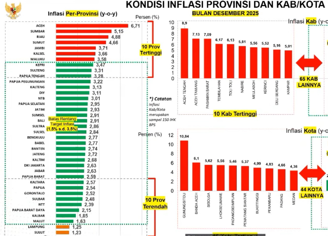 Pencapaian tersebut disampaikan dalam Rapat Koordinasi Pengendalian Inflasi Daerah (TPID) Tahun 2026 yang digelar pada Senin (12/1/2026).