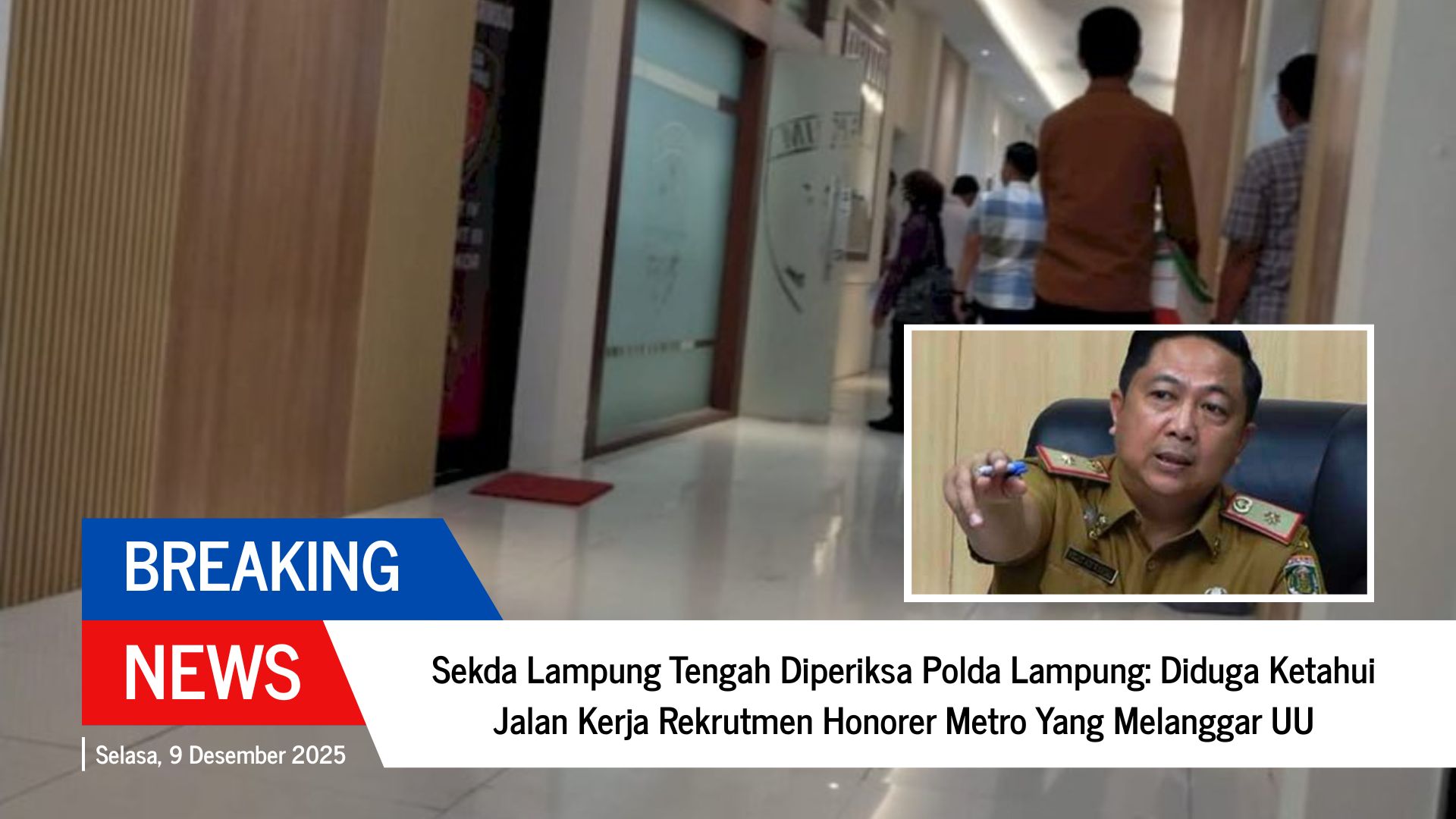 Bandar Lampung, Tipikor.news – Malam Senin (8/12/2025) menjadi momen kejut yang mengguncang. Sekretaris Daerah (Sekda) Kabupaten Lampung Tengah, Welly, tiba-tiba dipanggil ke Subdit Tipikor Ditreskrimsus Polda Lampung. Ia diduga mengerti proses rekrutmen honorer di Kota Metro yang tengah diselidiki karena dugaan penyimpangan dan korupsi.