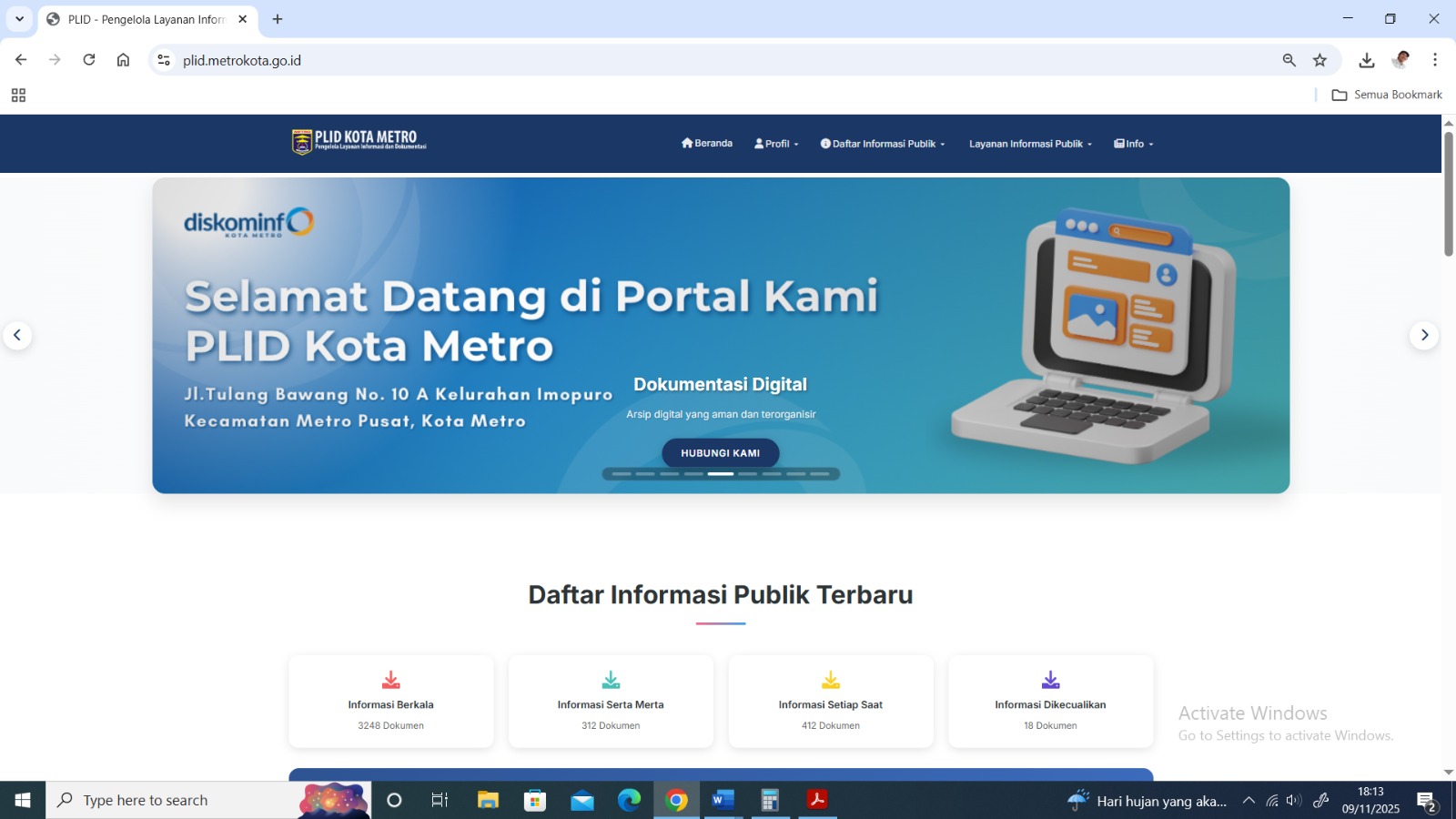 Tampilan Beranda portal PLID Kota Metro. Foto: Screnshot