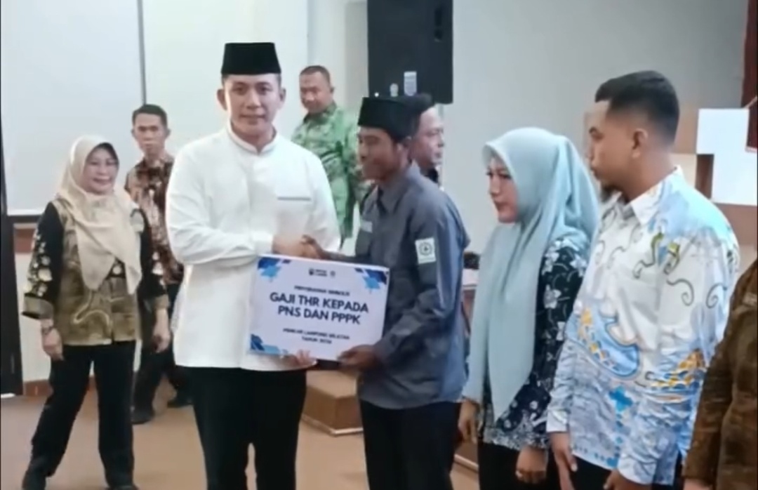 Penyerahan THR secara simbolis dilakukan oleh Bupati Lampung Selatan, Radityo Egi Pratama, kepada perwakilan ASN sebagai tanda dimulainya proses pencairan tunjangan menjelang Hari Raya Idul Fitri 1447 Hijriah.