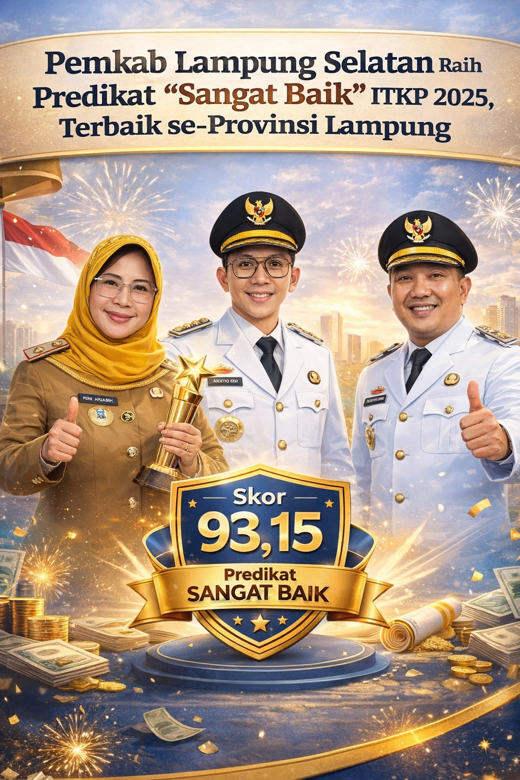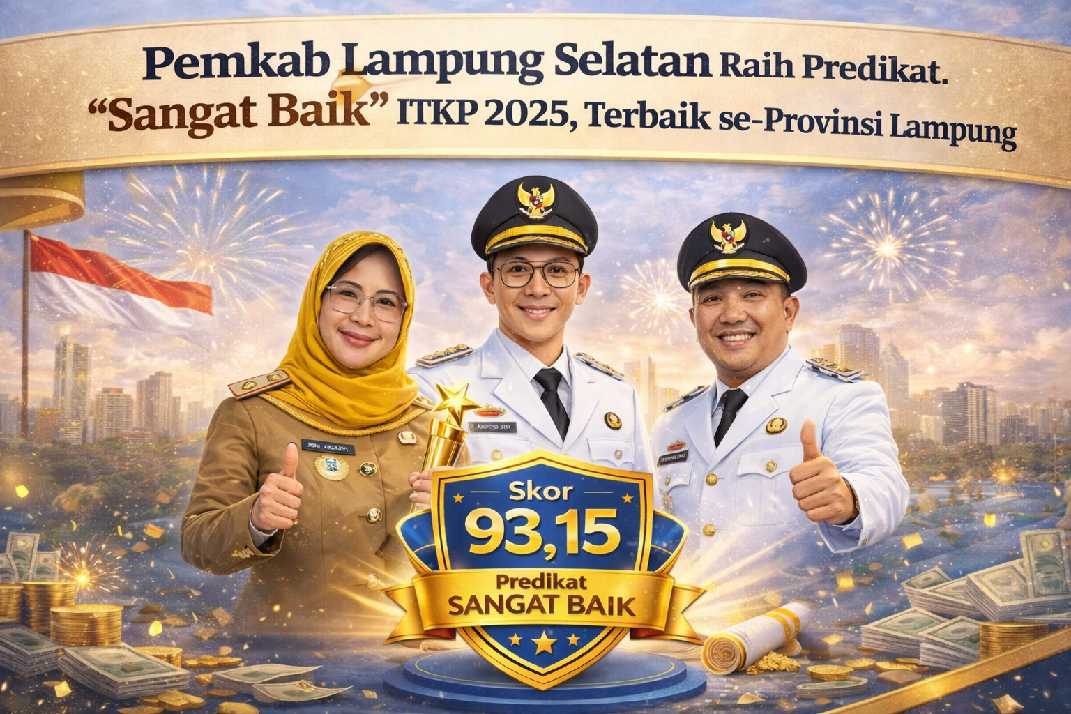 Pemerintah Kabupaten (Pemkab) Lampung Selatan berhasil meraih predikat “Sangat Baik” dalam penilaian Indeks Tata Kelola Pengadaan (ITKP) Tahun 2025, sekaligus menjadi kabupaten terbaik se-Provinsi Lampung di sektor pengadaan barang dan jasa.