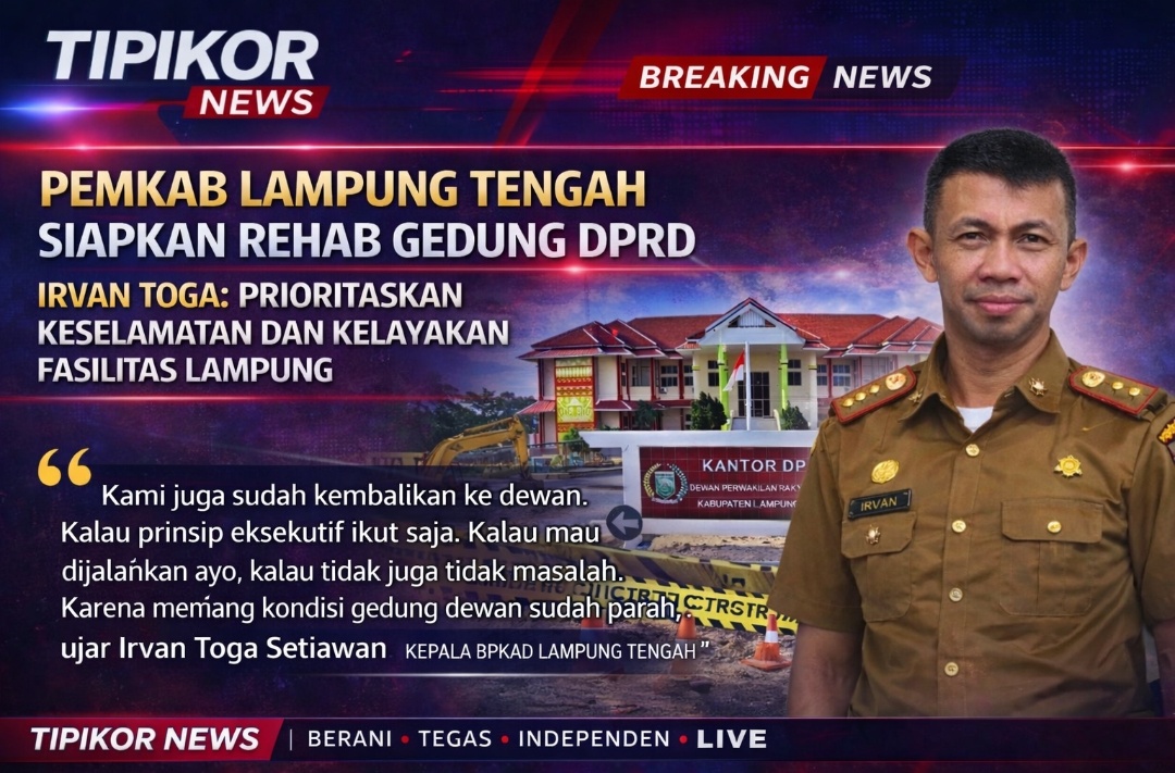Lampung Tengah, Tipikor News β€” Pemerintah Kabupaten Lampung Tengah melalui Dinas Perumahan, Kawasan Permukiman, Pertanahan dan Cipta Karya (DPKP2CK) menegaskan bahwa rencana rehabilitasi Gedung DPRD Lampung Tengah merupakan langkah yang didasarkan pada kebutuhan riil terhadap kondisi bangunan yang dinilai sudah memerlukan penanganan serius.