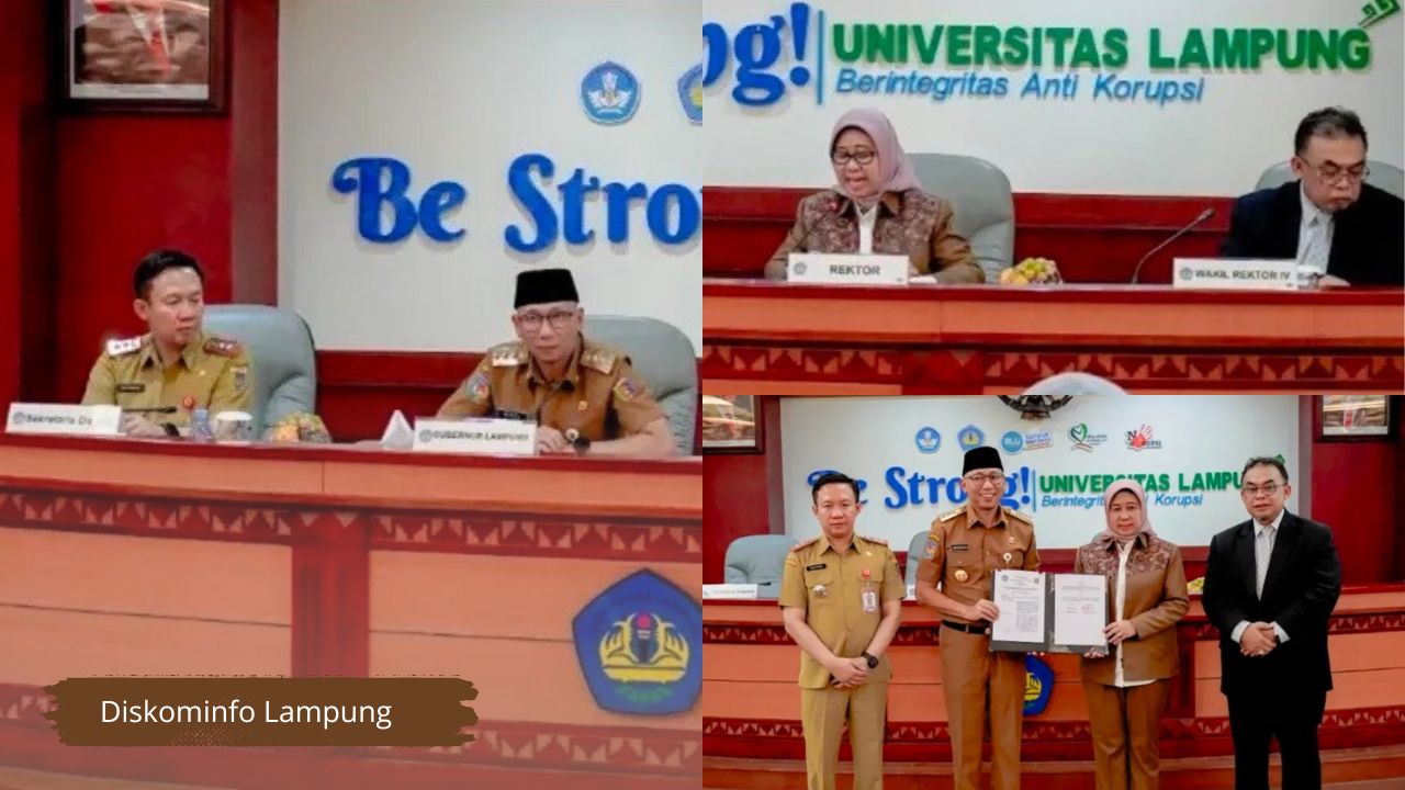 Penandatanganan Nota Kesepakatan antara Pemerintah Provinsi Lampung dan Universitas Lampung, yang ditandatangani langsung oleh Gubernur Lampung, Rahmat Mirzani Djausal bersama Rektor Universitas Lampung (Unila), Lusmeilia Afriani yang dilaksanakan di Ruang Sidang Lantai ll Gedung Rektorat Universitas Lampung, Senin (21/07/2025).