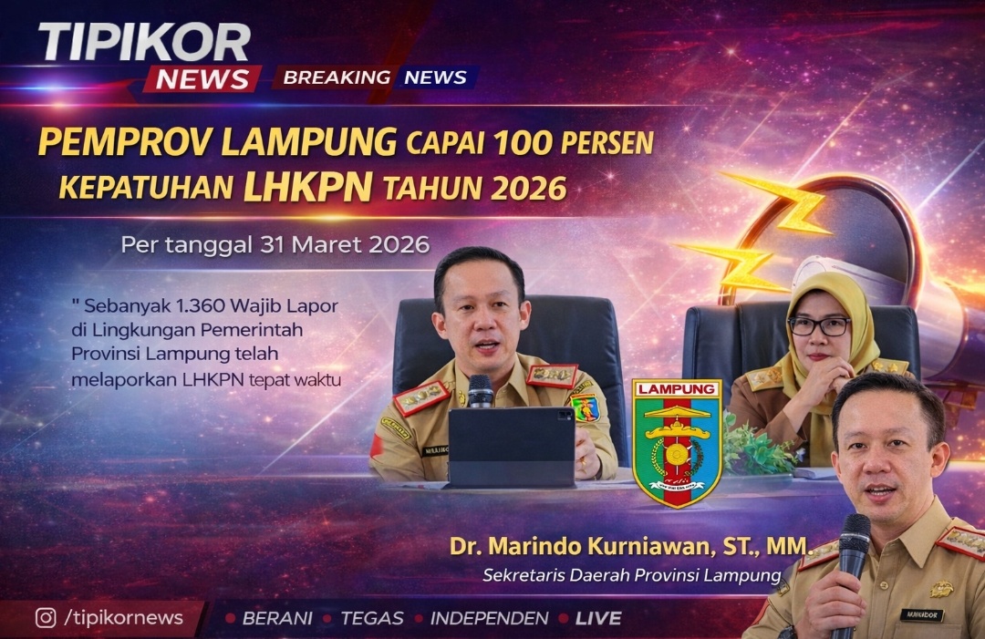 Bandar Lampung, Tipikor News β€” Pemerintah Provinsi Lampung mencatat capaian signifikan dalam pelaporan Laporan Harta Kekayaan Penyelenggara Negara (LHKPN) dengan tingkat kepatuhan mencapai 100 persen per 31 Maret 2026.