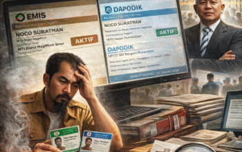 Pengakuan ini sontak memantik pertanyaan serius: Mengapa seorang operator dinas justru menyarankan pendataan, padahal status sekolah induk guru tersebut diketahui berada di MTs Darul Maghfiroh—lembaga di bawah Kementerian Agama, bukan Dinas Pendidikan?