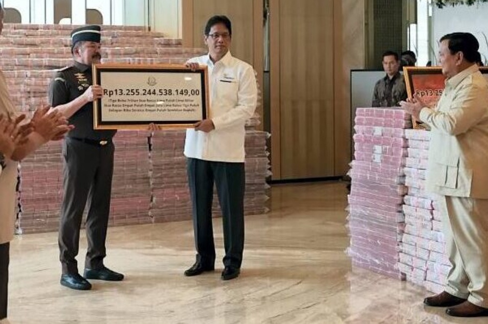 Penyerahan uang pengganti dilakukan oleh Jaksa Agung ST Burhanuddin kepada Menteri Keuangan Purbaya Yudhi Sadewa, disaksikan langsung oleh Presiden Prabowo.