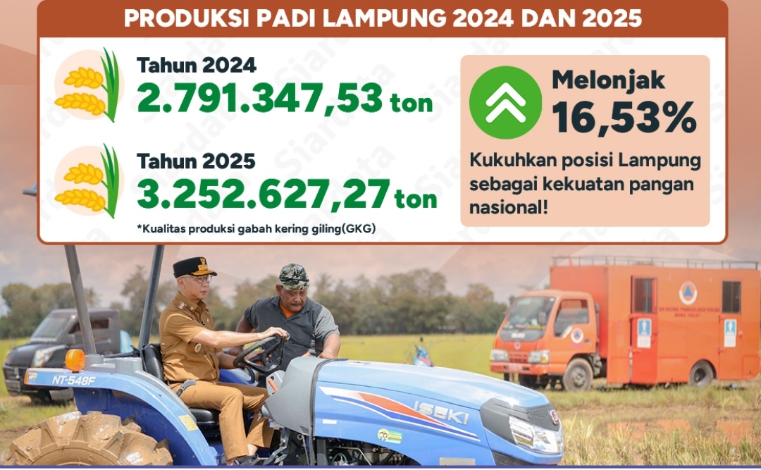 Capaian ini menjadi salah satu yang tertinggi dalam sejarah dan memperkuat posisi Lampung sebagai salah satu dari enam besar produsen padi nasional.