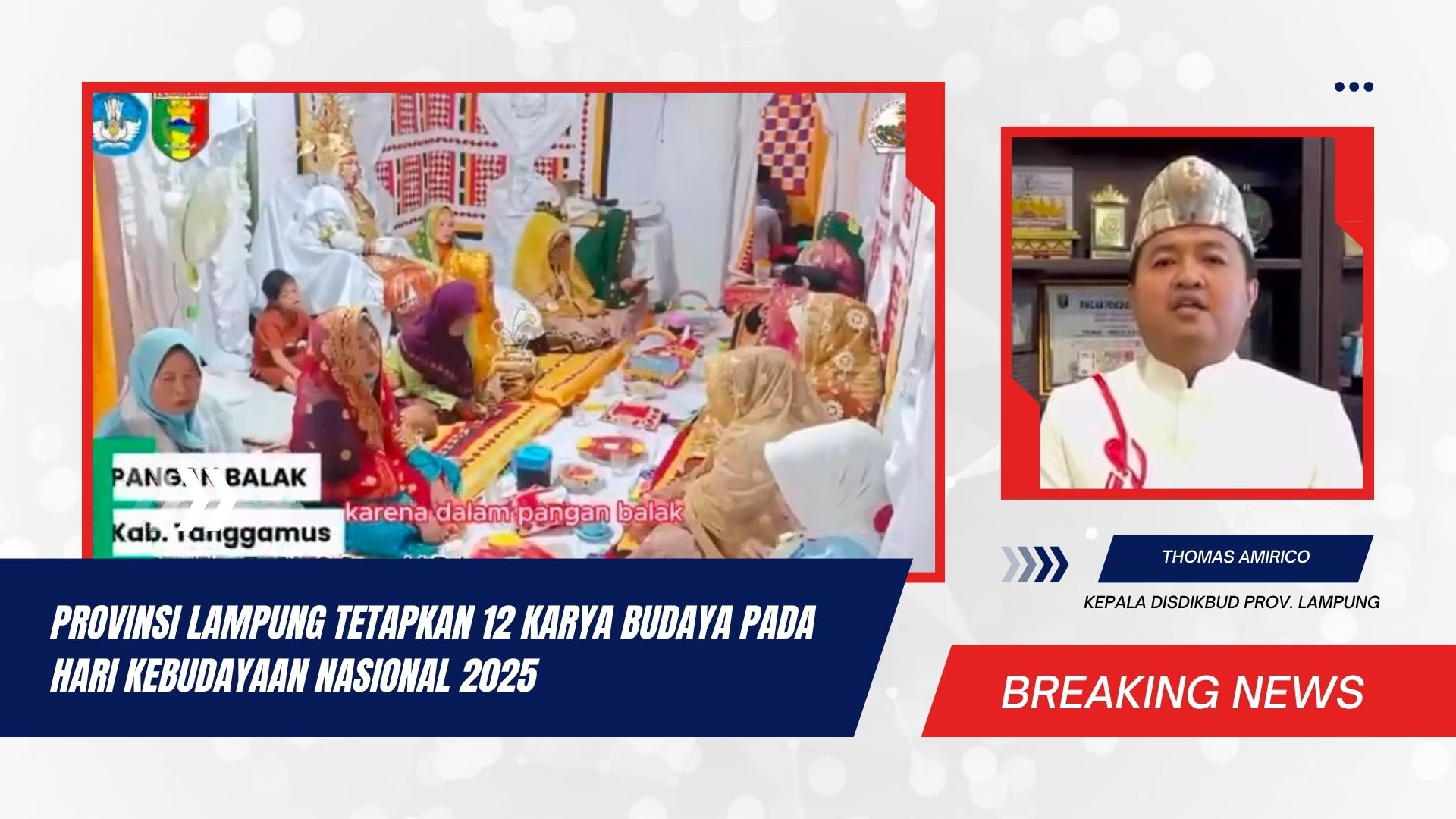 Bandar Lampung, Tipikor.news – Dalam rangka memperingati Hari Kebudayaan Nasional Tahun 2025, Provinsi Lampung menorehkan prestasi membanggakan dengan berhasil menetapkan 12 karya budaya dari berbagai kabupaten sebagai warisan budaya daerah.