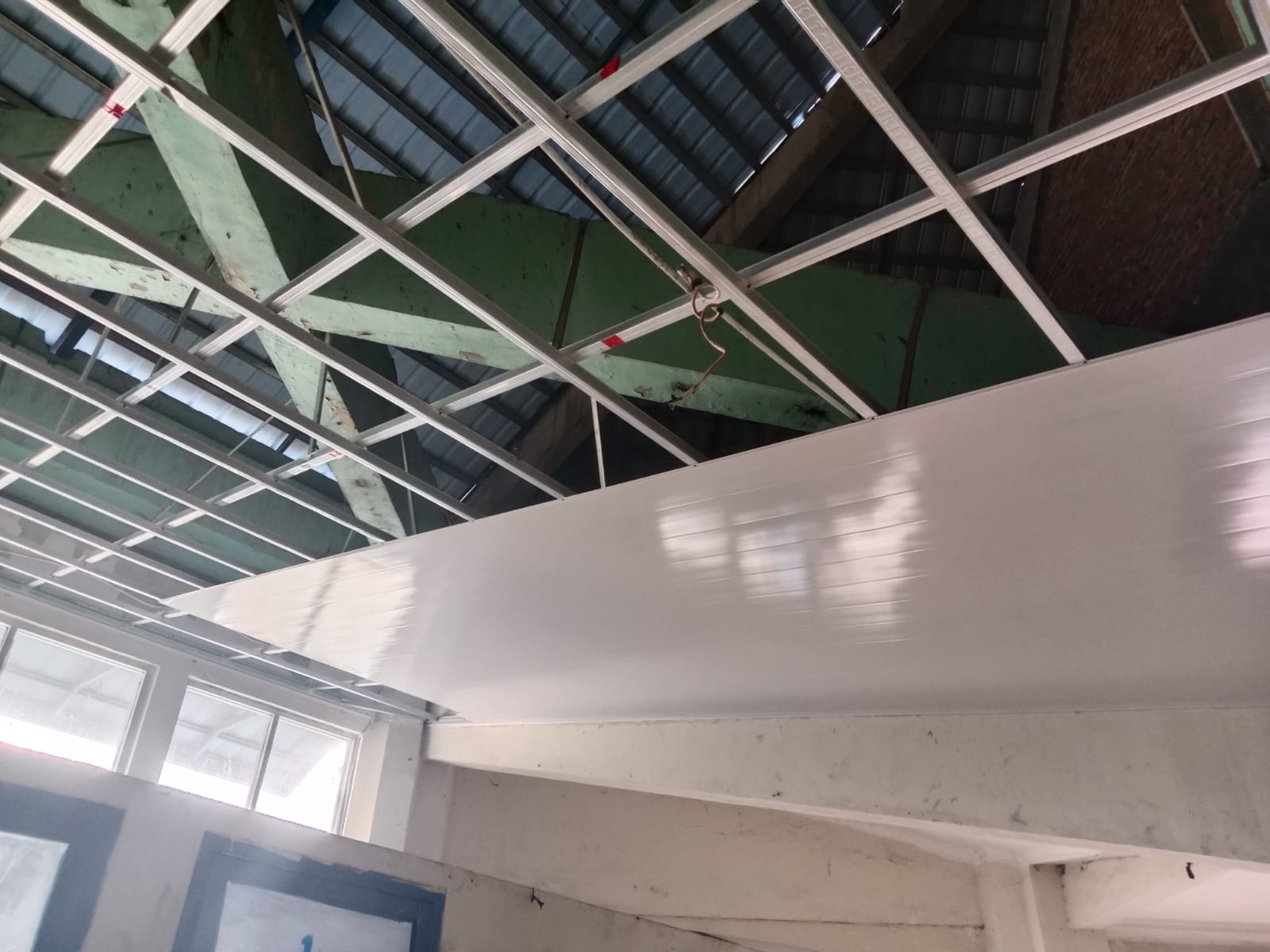 Selain kebocoran, awak media juga menemukan rangka baja ringan yang tampak tidak seragam dan diduga bukan material baru. Beberapa bagian terlihat berkarat, seolah diambil dari sisa proyek lama.