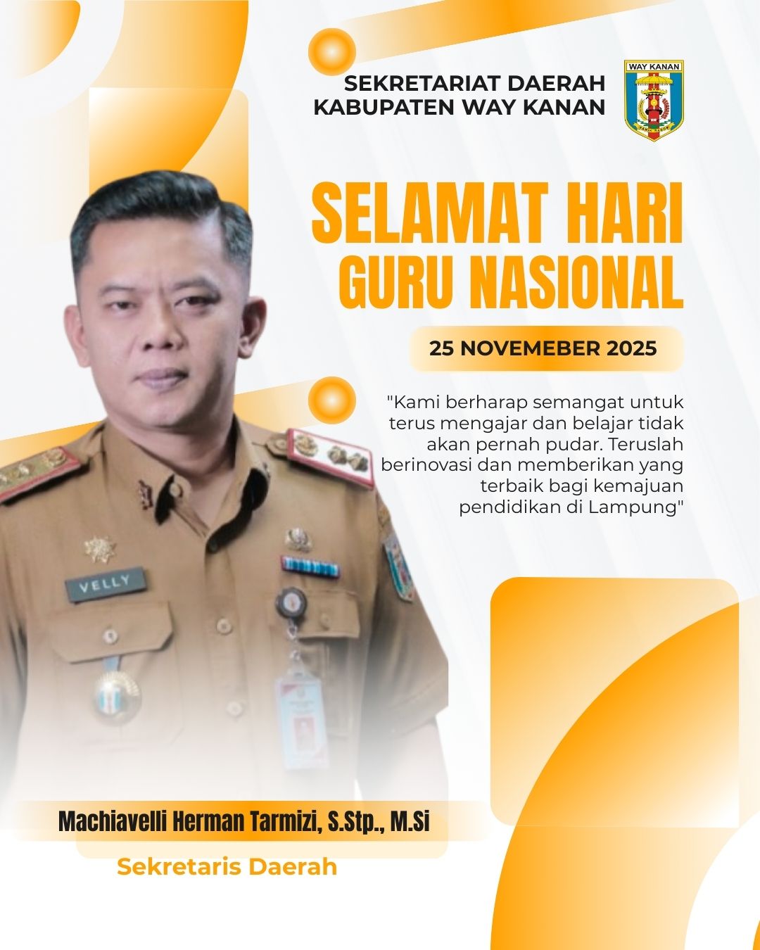 Way Kanan, Tipikor.news – Sekretaris Daerah (Sekda) Kabupaten Way Kanan, Machiavelli Herman Tarmizi, S.STP., M.Si, memberikan apresiasi yang mendalam kepada seluruh guru di wilayahnya dalam momentum peringatan Hari Guru Nasional yang jatuh pada 25 November 2025.