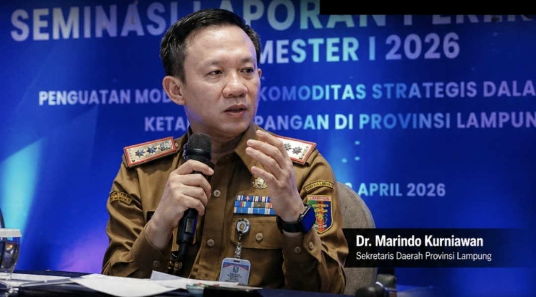 Hal tersebut disampaikan Marindo Kurniawan dalam forum Diseminasi Laporan Perekonomian Semester I Tahun 2026 yang mengangkat tema penguatan model bisnis komoditas strategis dalam mendukung ketahanan pangan di Provinsi Lampung.