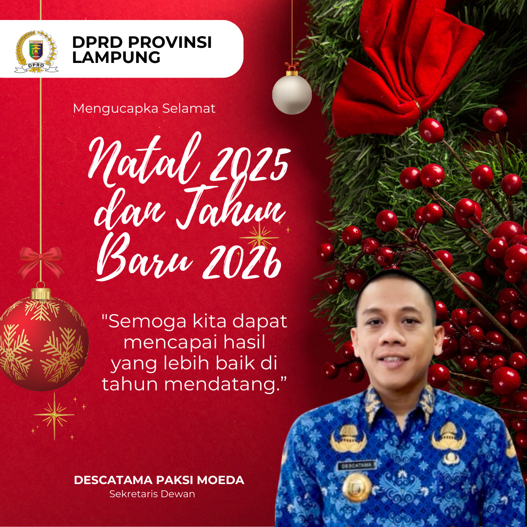 Bandar Lampung, Tipikor.news – Menjelang perayaan Natal 2025 dan Tahun Baru 2026, suasana penuh sukacita mulai menyelimuti Provinsi Lampung. Di tengah semangat masyarakat menyambut pergantian tahun, Sekretaris DPRD Provinsi Lampung, Descatama Paksi Moeda, menyampaikan pesan hangat yang sarat makna dan harapan bagi seluruh warga.