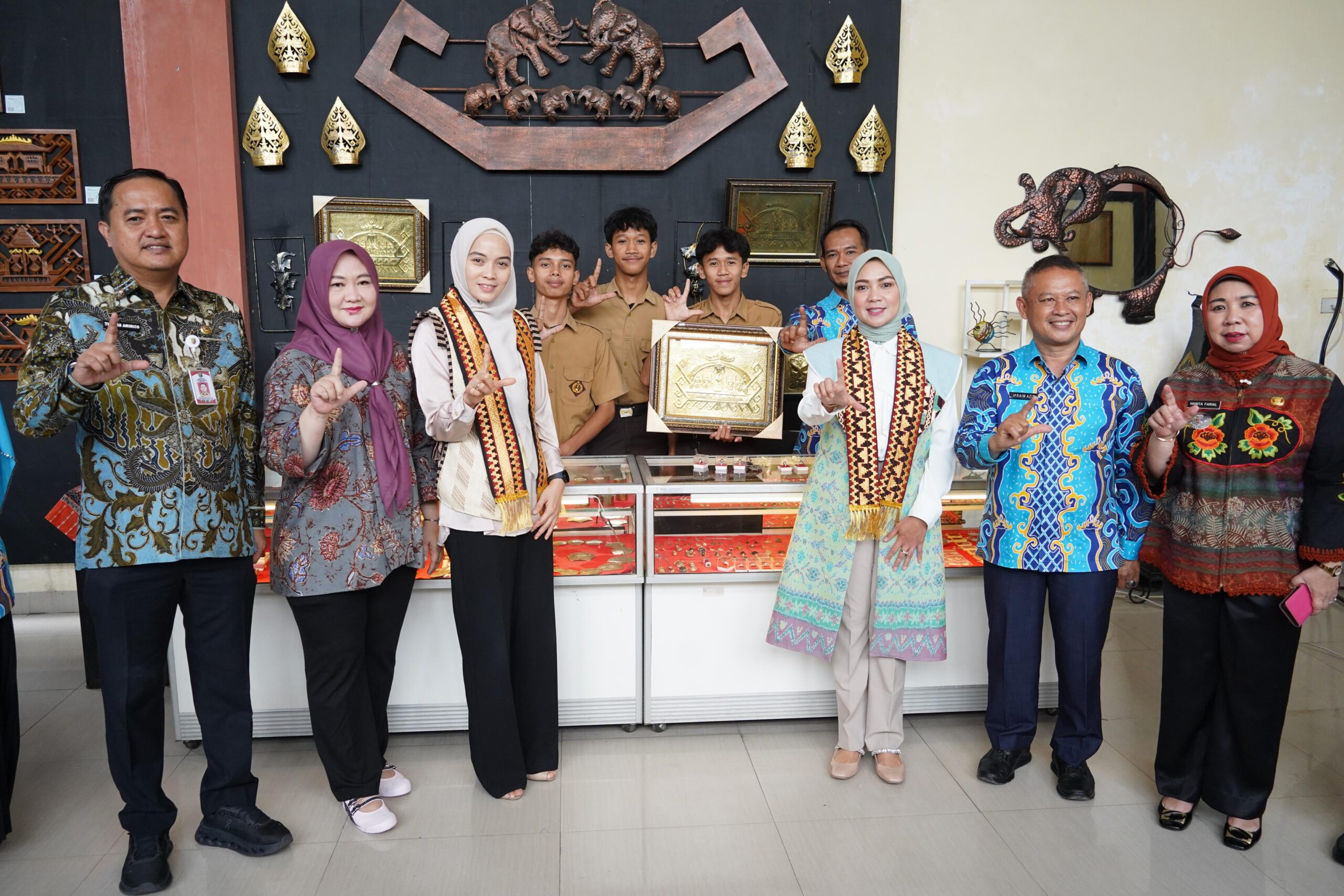 Dalam kesempatan tersebut, Purnama Wulan Sari Mirza berkesempatan meninjau Galeri SMKN 5 Bandar Lampung yang menampilkan beragam hasil karya kreatif siswa berbasis seni dan teknologi, mulai dari batik tulis, sulam tapis khas Lampung, desain visual, hingga berbagai produk kriya dan aksesori.