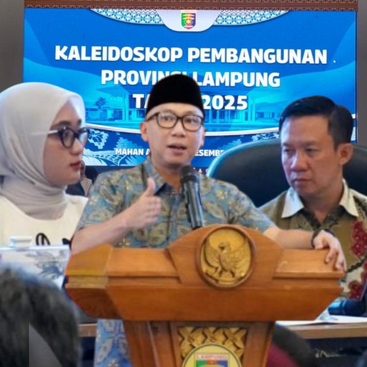 Didampingi Wakil Gubernur Jihan Nurlela dan Sekretaris Daerah Marindo Kurniawan, Gubernur Mirza membuka Kaleidoskop Pembangunan Provinsi Lampung 2025 dengan satu kalimat yang langsung menghentak: “Lampung kaya, tapi belum sejahtera.”